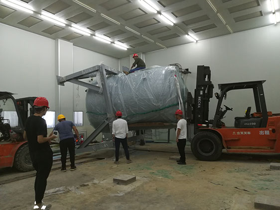 興發(fā)集團(tuán)灌裝車間要安裝二臺(tái)設(shè)備,因空間限制折臂吊也不能進(jìn)車間作業(yè),安裝設(shè)備的負(fù)責(zé)人聯(lián)系到宜昌叉車出租明輝叉車租賃,我們開了5噸、10噸二臺(tái)叉車一早進(jìn)了車間,看了現(xiàn)場還真是高難度的。設(shè)備是二個(gè)直徑3米、長5米、重量有5噸多的大灌子和二個(gè)支座,要把設(shè)備從倉庫搬運(yùn)到30米外的車間,而且只能用一臺(tái)10噸叉車叉進(jìn)去,先放好支座,然后用叉車把倒著的灌子放到支座里面,再把灌子慢慢的立起來,對面用5噸的叉車托住防止意外,整個(gè)過程要一氣呵成穩(wěn)穩(wěn)的立起,公司的人在我們進(jìn)廠時(shí)就囑咐灌子價(jià)值高,而且灌子里面是易碎的材料做的不能在立的時(shí)候太快造成損壞。安裝過程充滿了挑戰(zhàn)性,5個(gè)多小時(shí)過去了,終于搞定了一個(gè),在我們和安裝人員的群策群力下晚上9點(diǎn)h設(shè)備搬運(yùn)圓滿完成。? ? ? ?